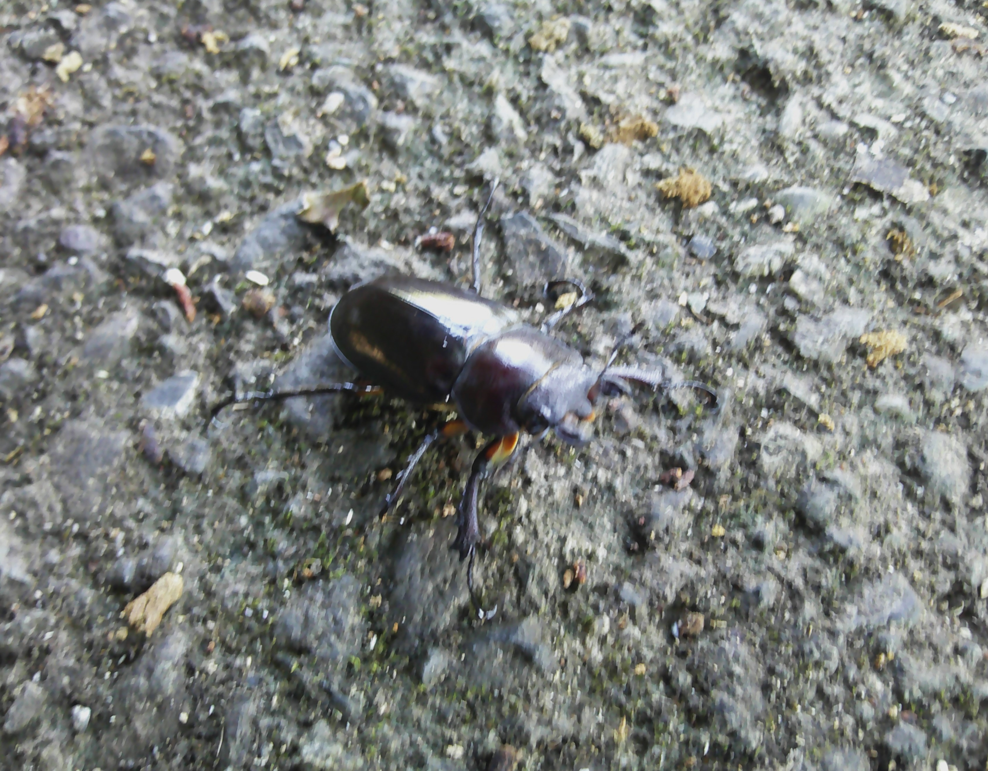 道路に歩いているクワガタを拾います^^)