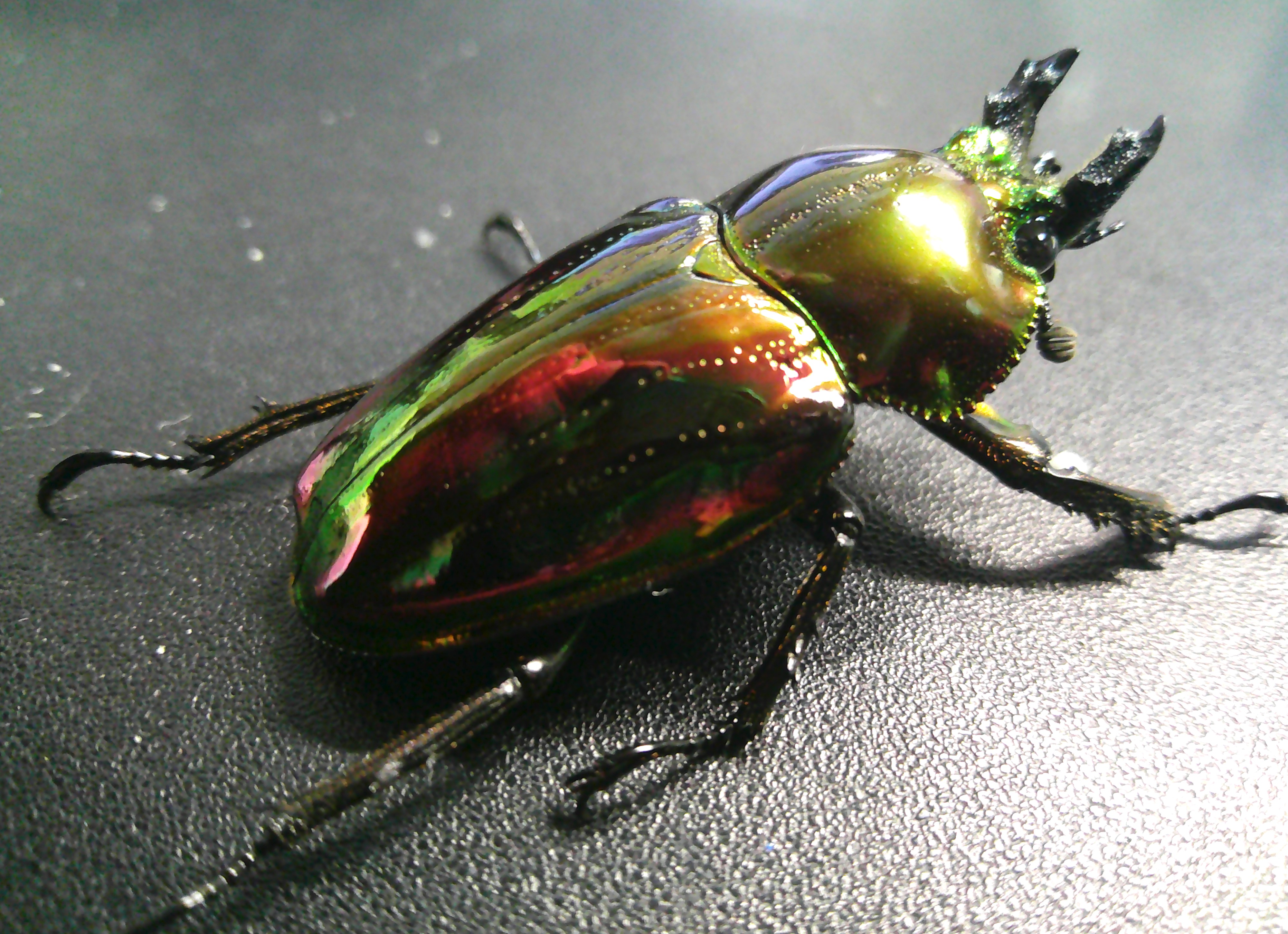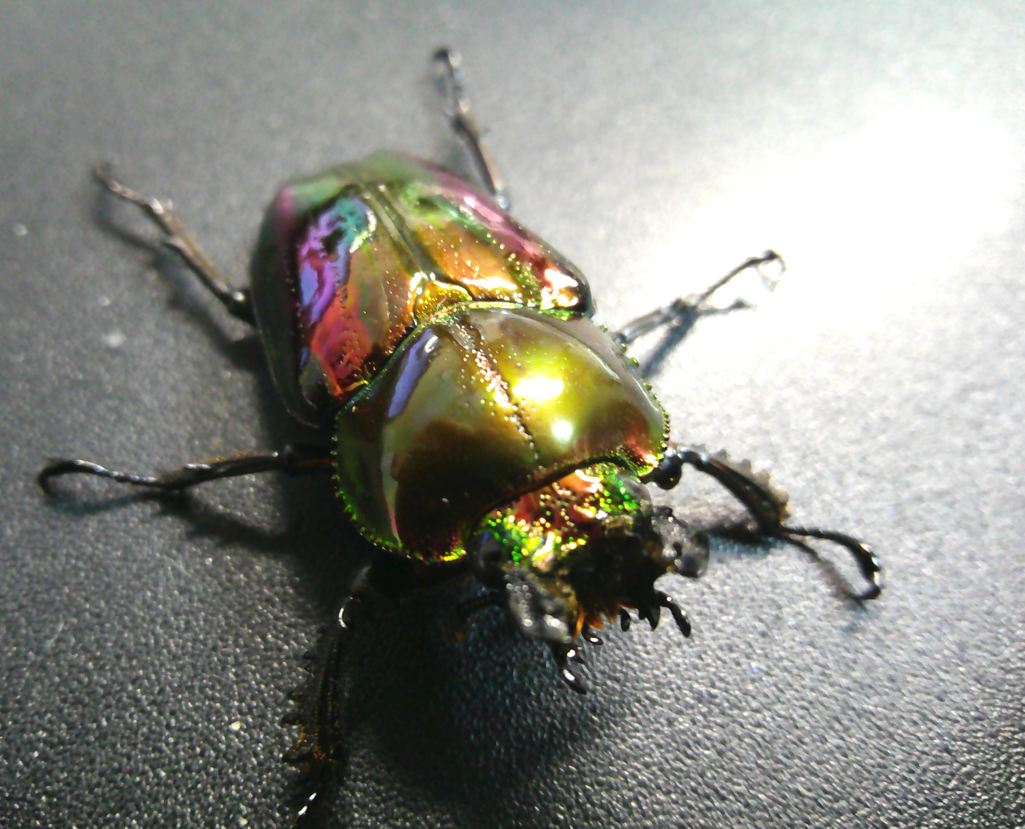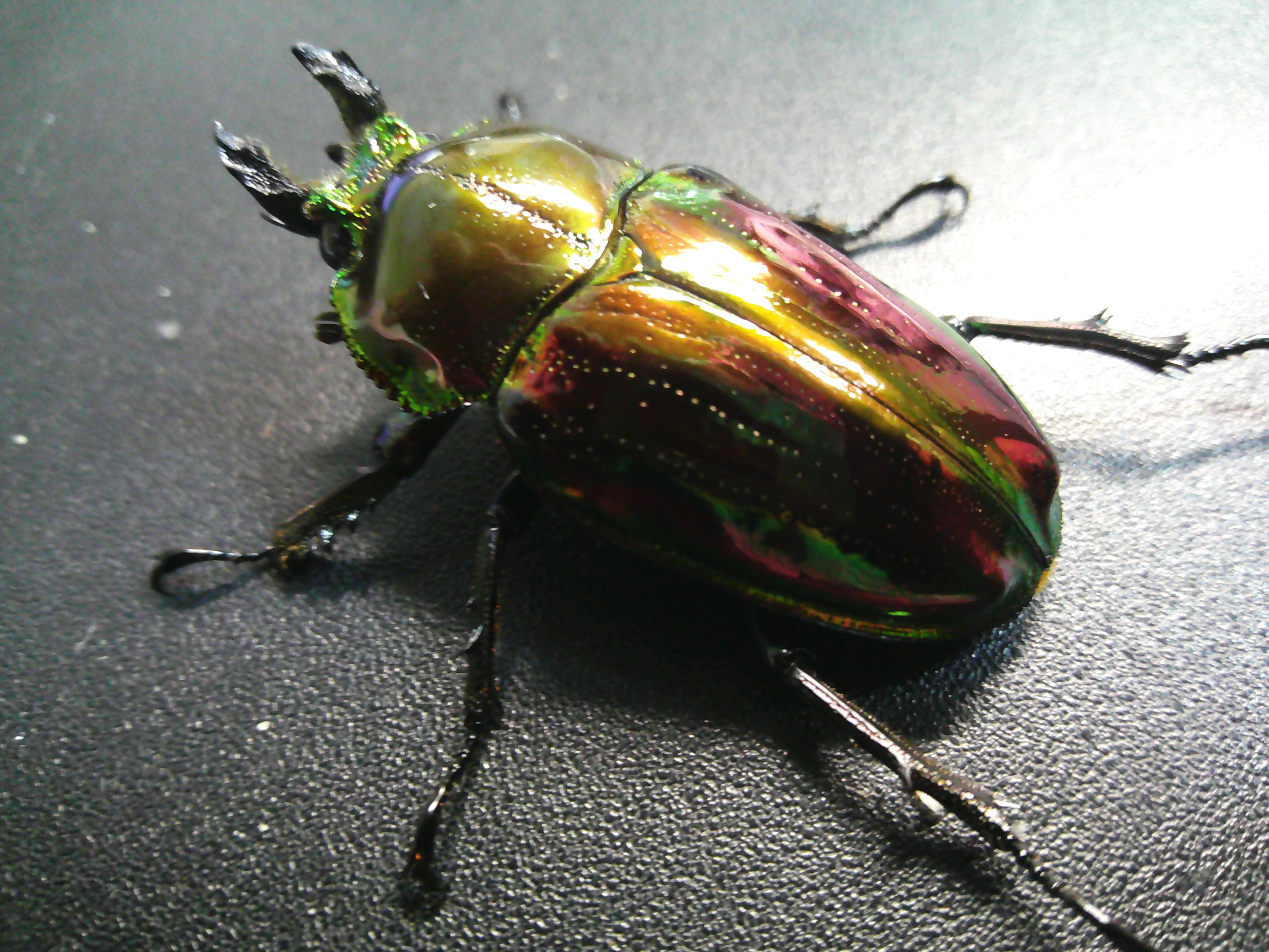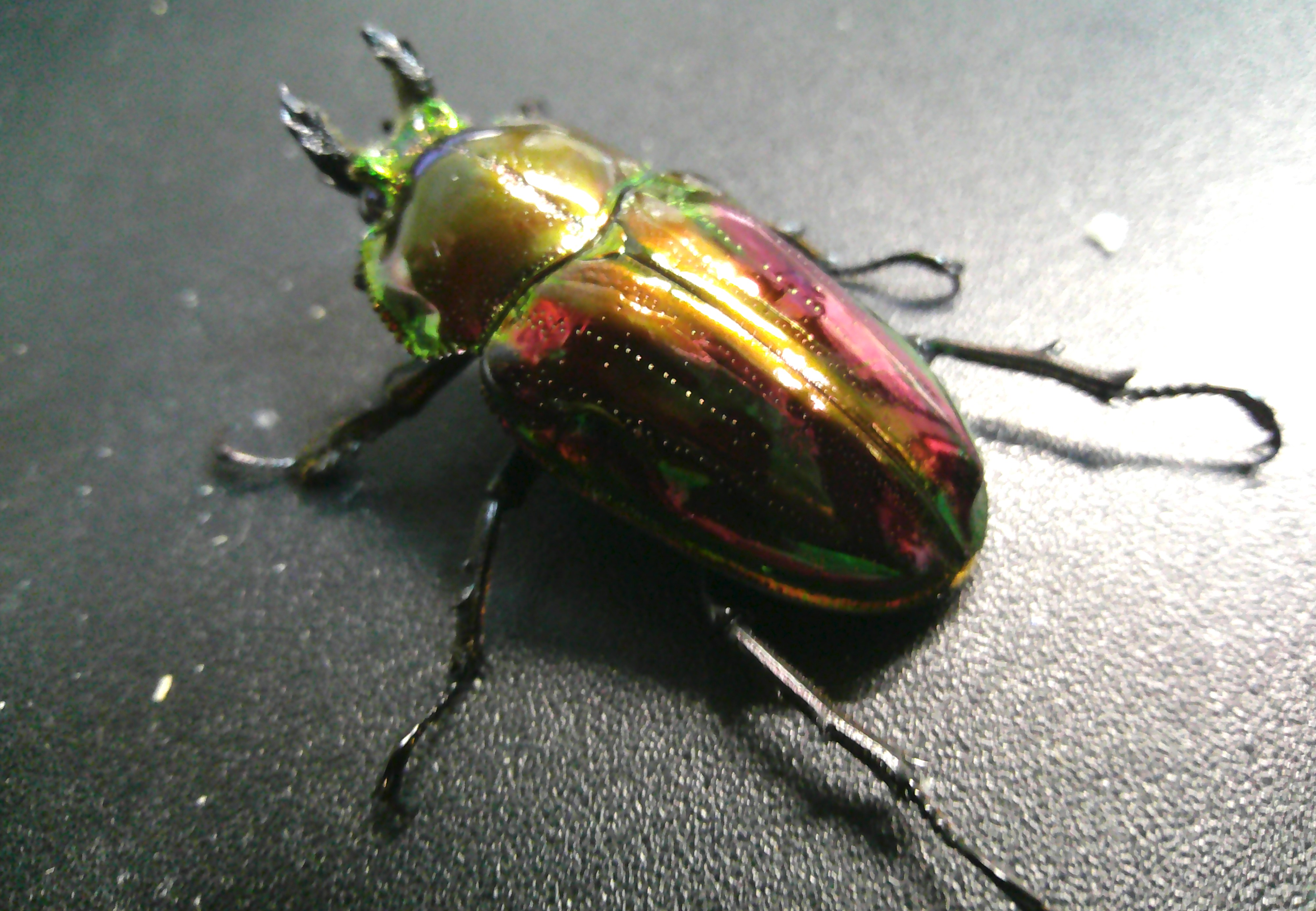 赤・・・難しいですね。。実はこの個体 上翅の緑に赤いフィルムで