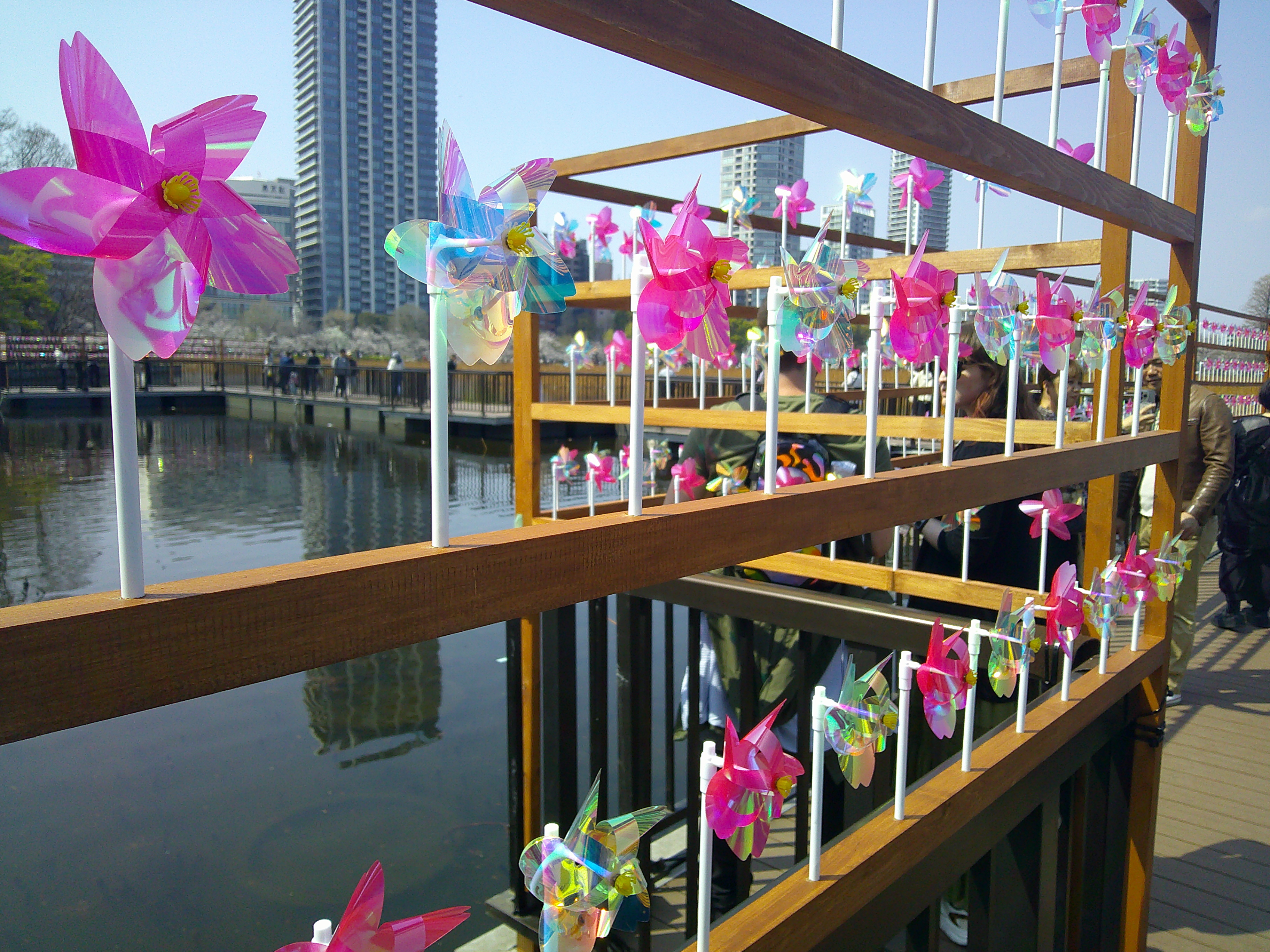 不忍池遊歩道に飾られた風車♡ 風が吹くと一斉に回り出してとてもきれいでした^^)
