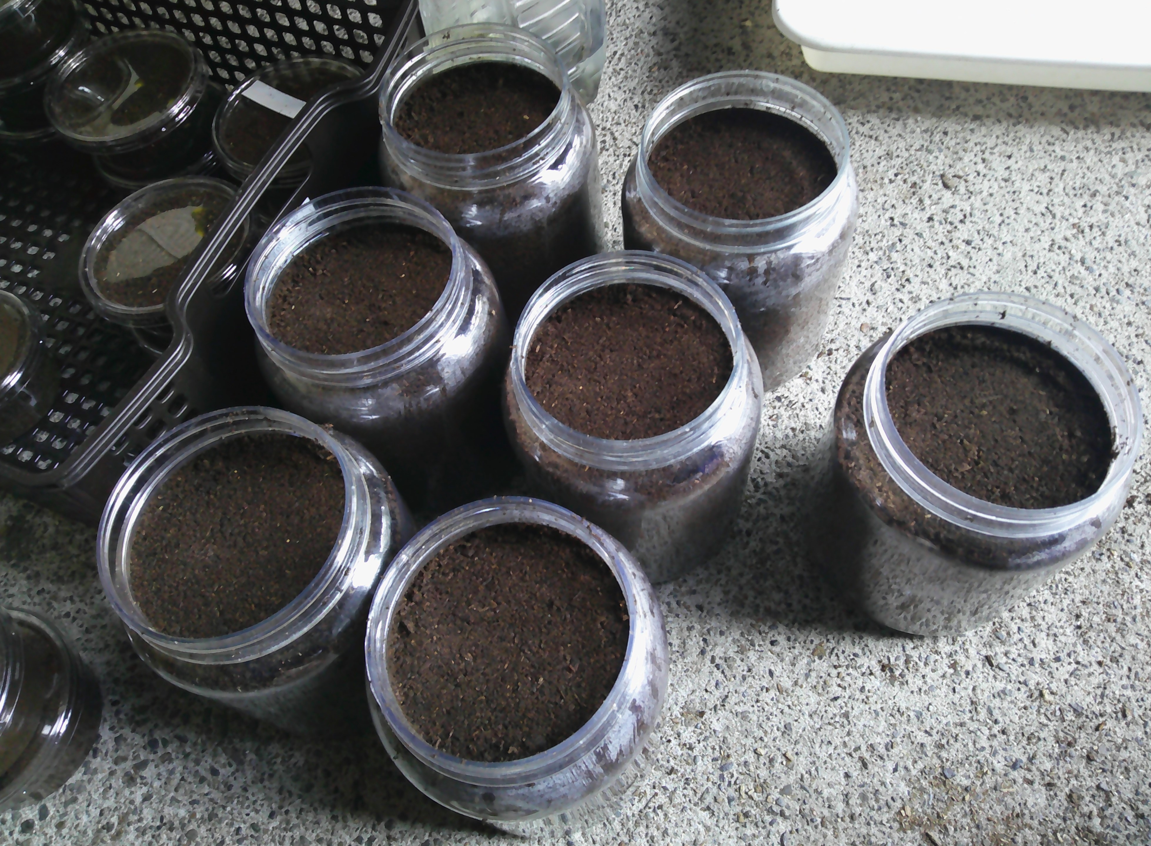 ミヤマ幼虫のマット付け足しから始めました。
