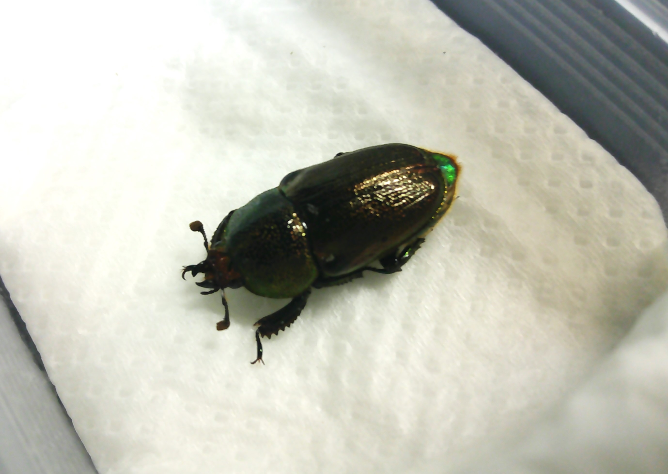 ♀は渋めな色合いです。黒っぽく見えますがダークグリーンで
