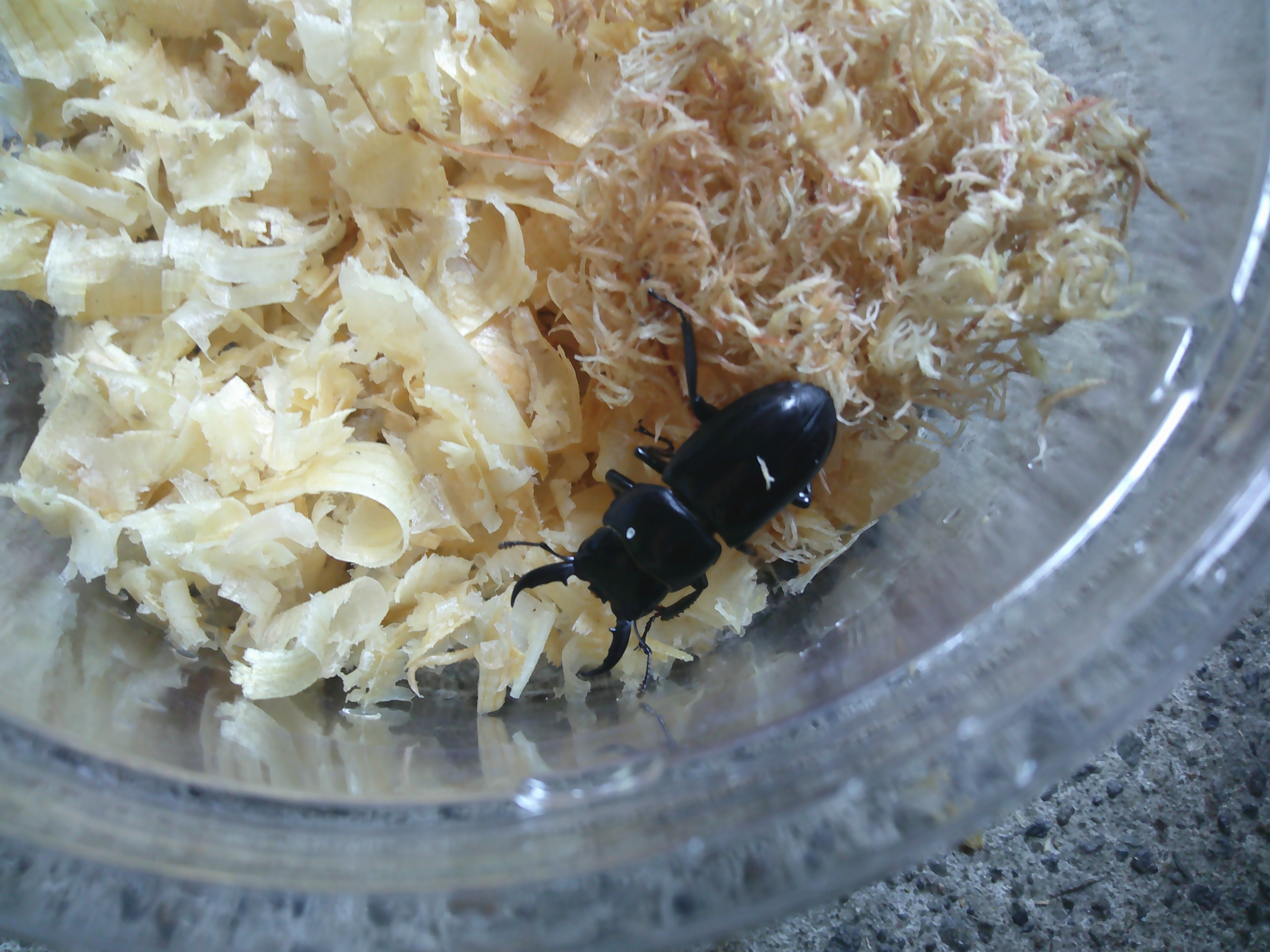 シェンクの和名はオオクワガタですが、ヒラタの産卵セットで産むので飼育自体は