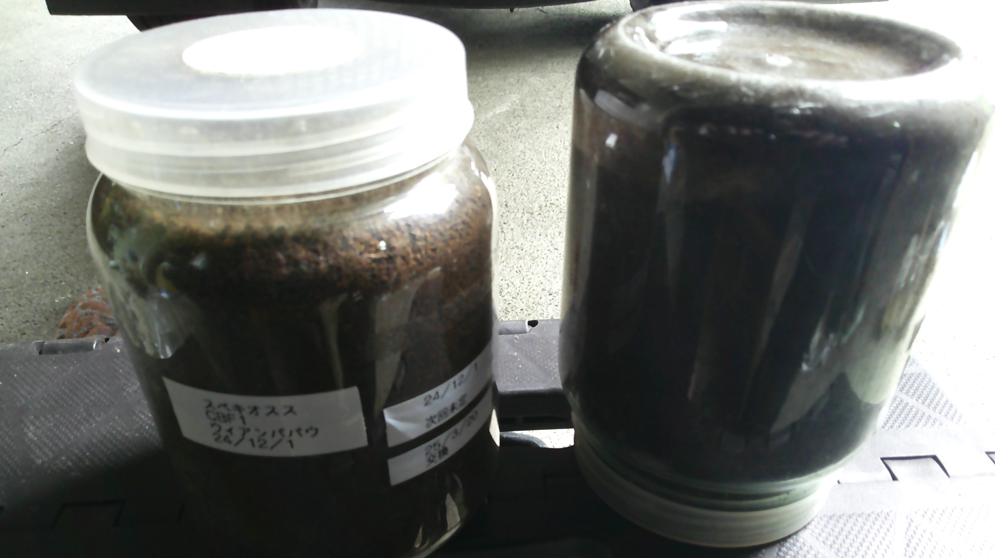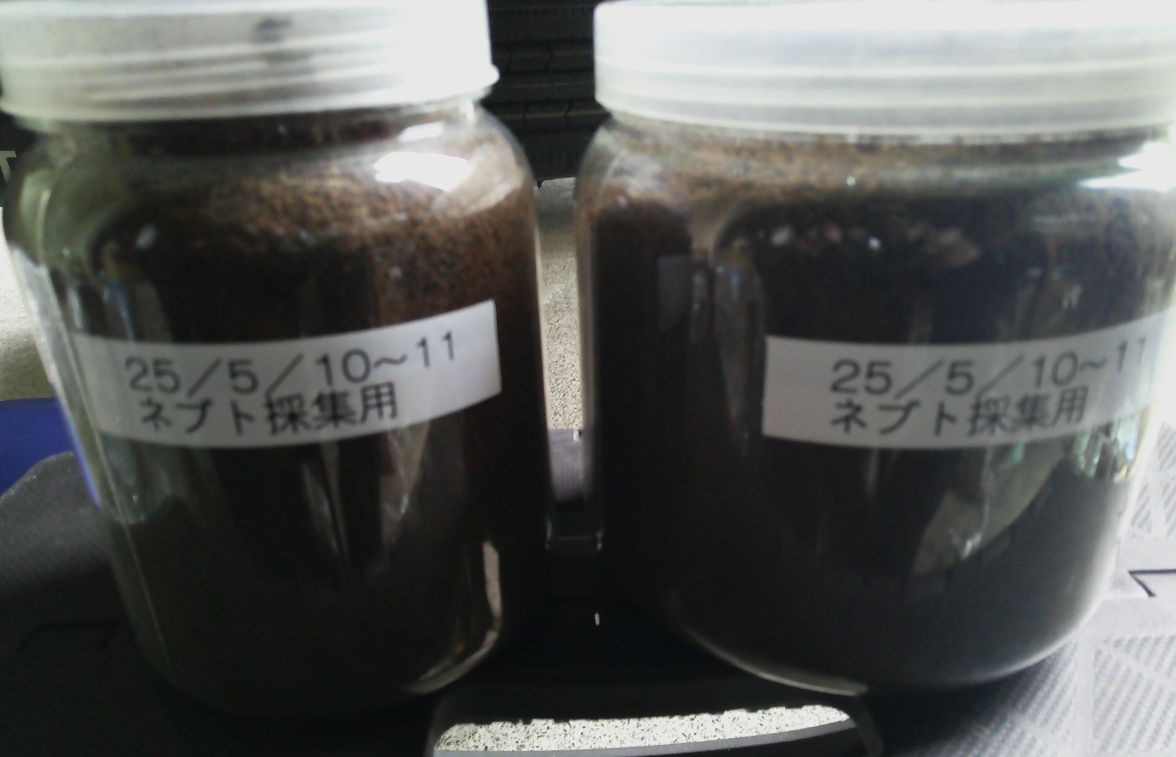 お次は採集してきたネブト幼虫の交換。画像のボトルは採集時に持って行ったモノ。
