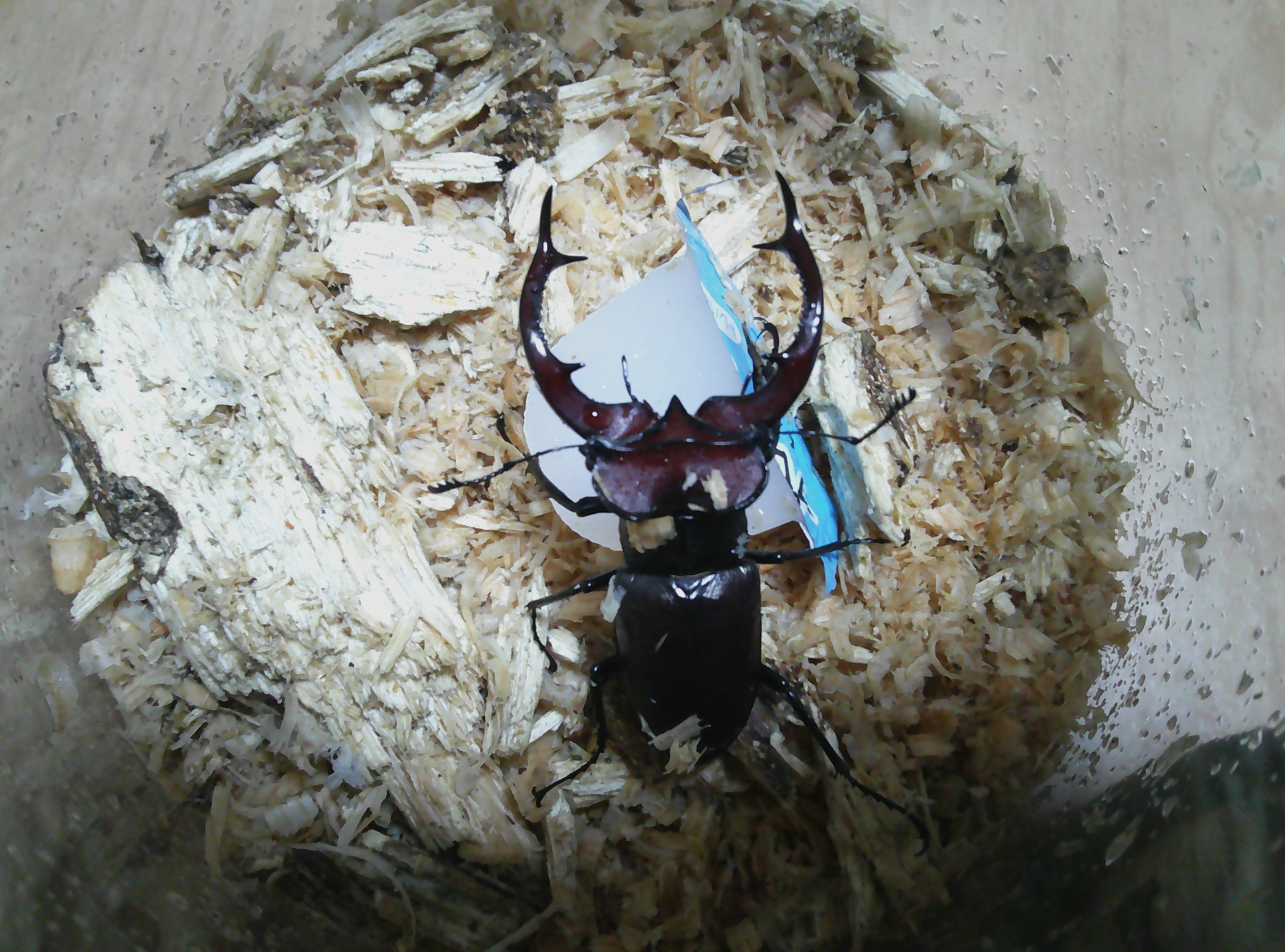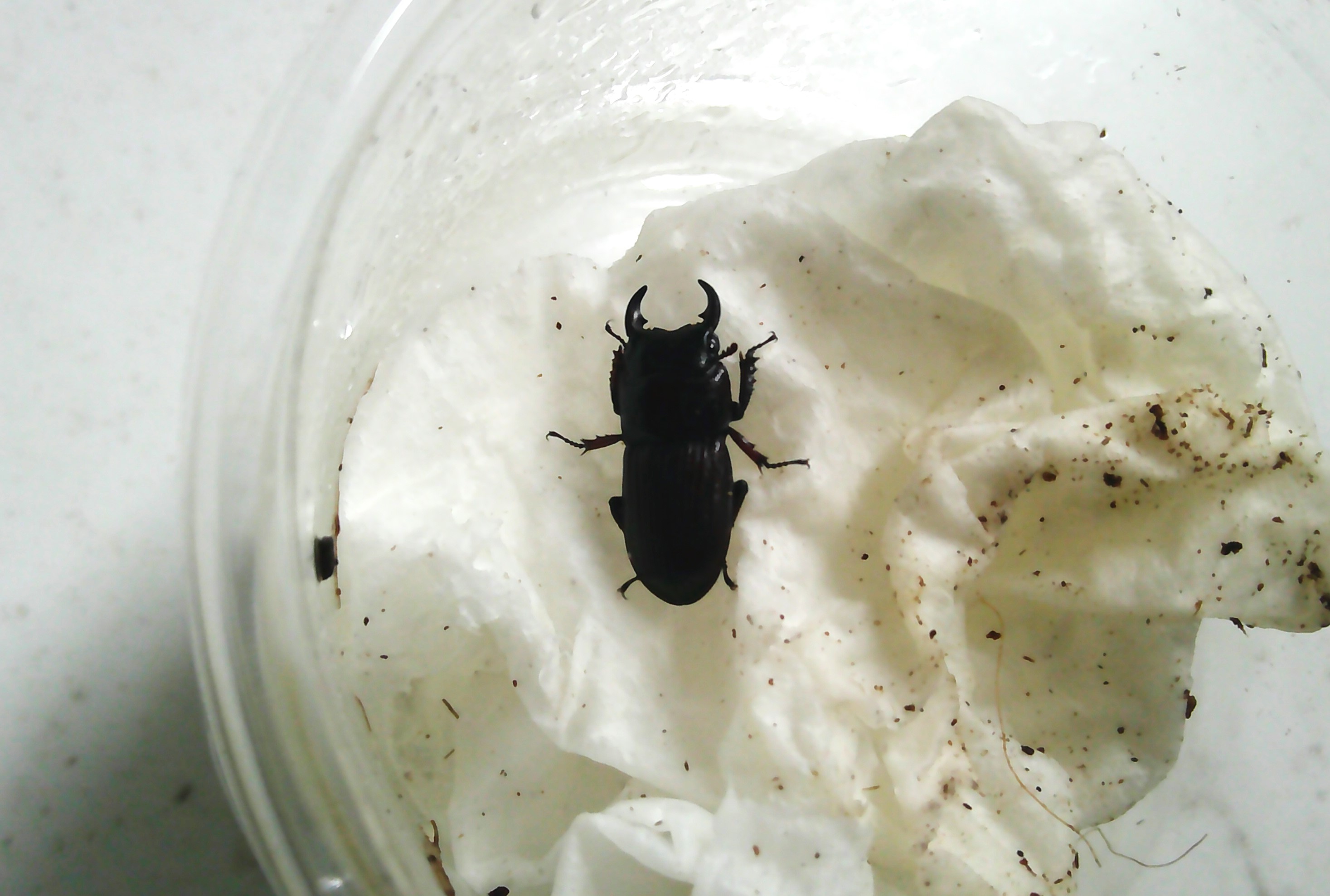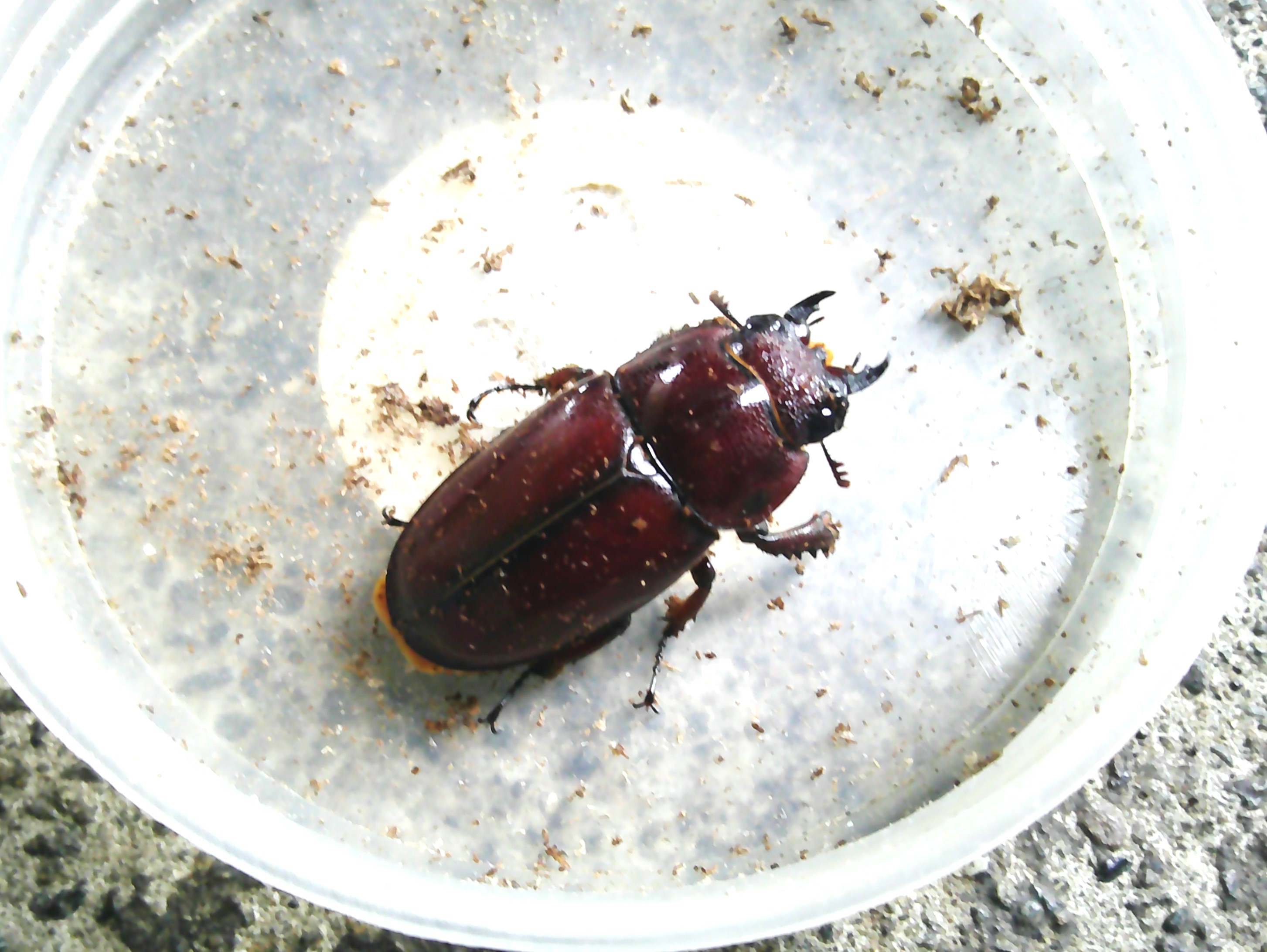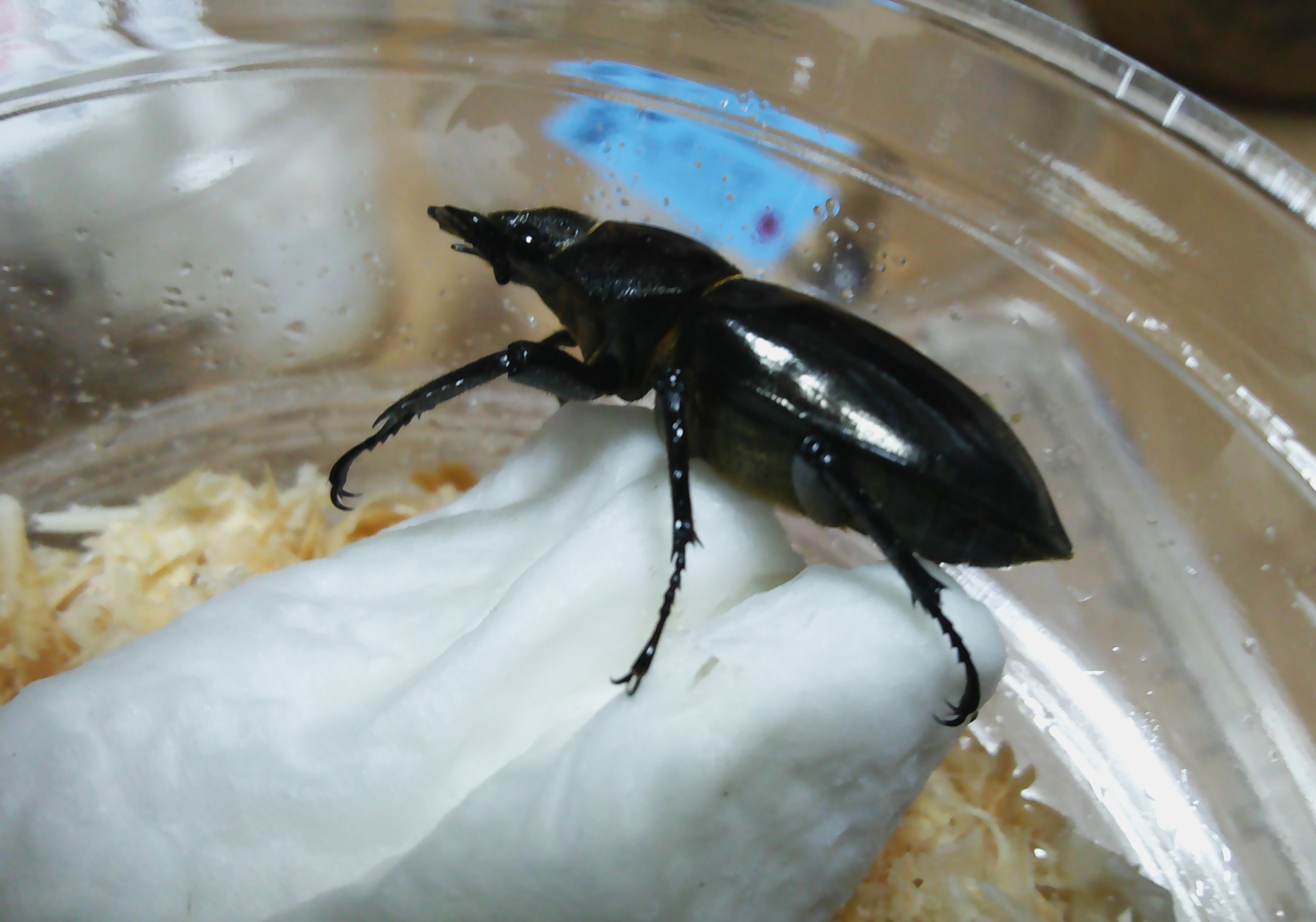 ボイレアウシカクワガタのプリンカップに入っていた個体を交換して、本日の