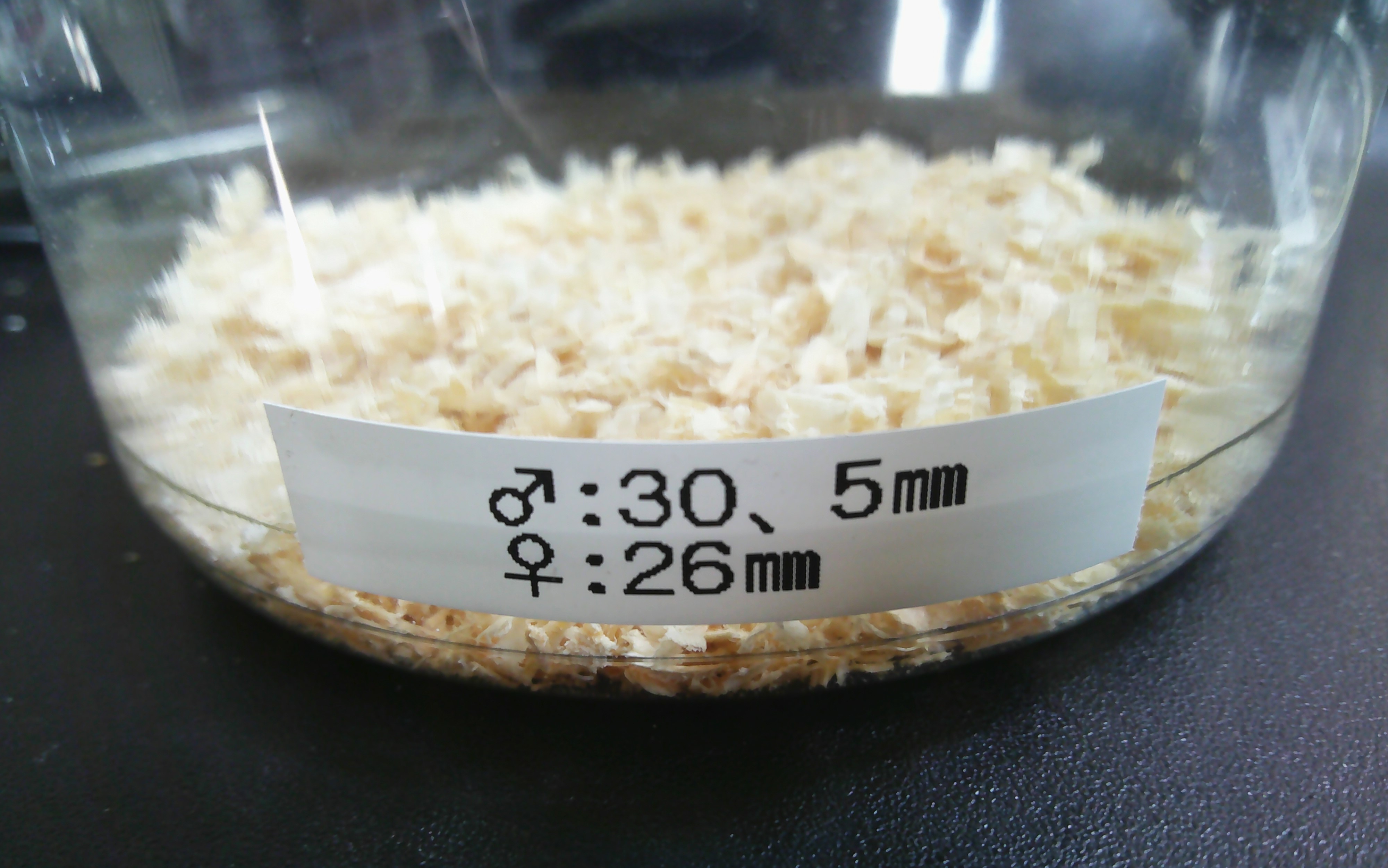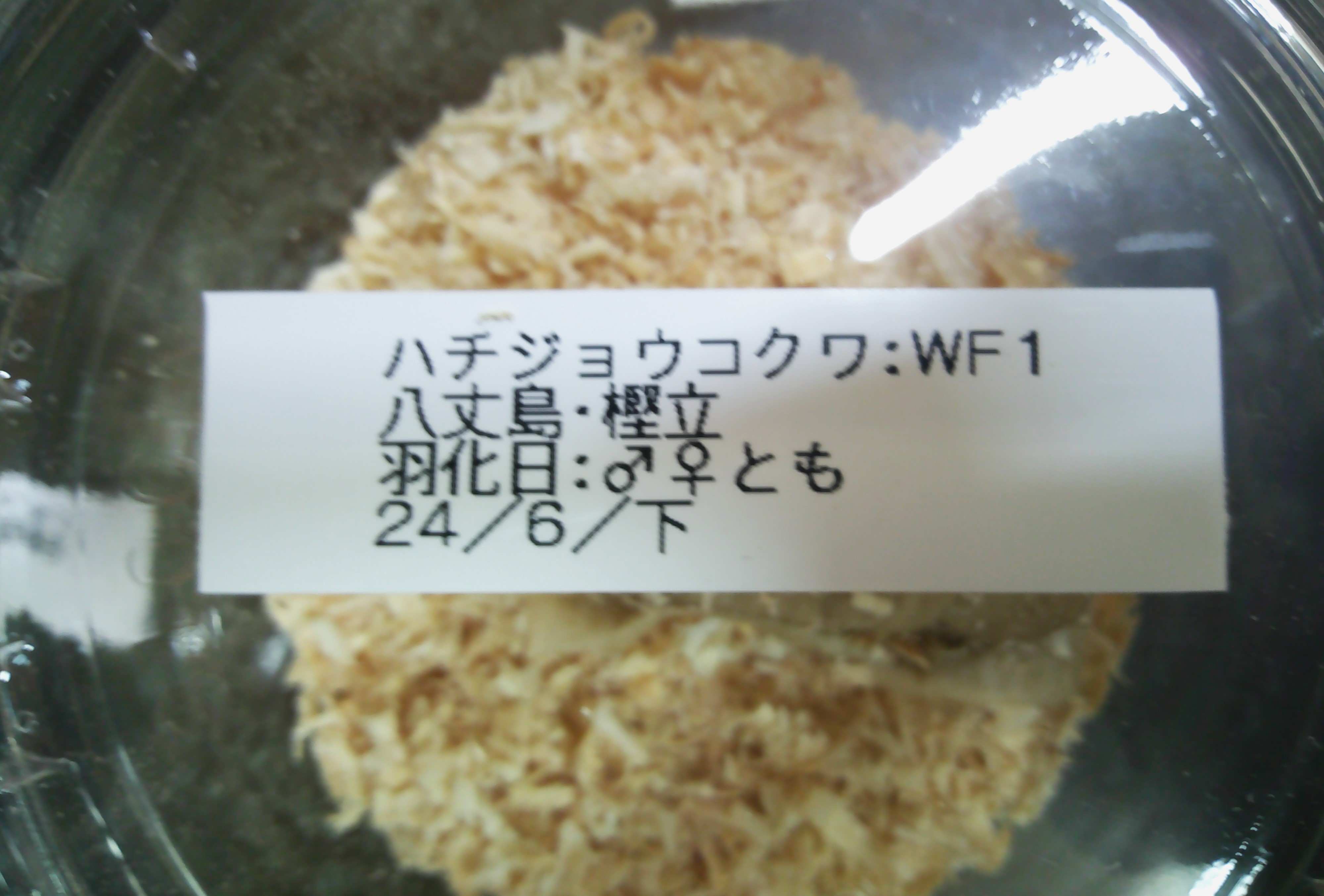 こんなふーに種類名 産地 羽化日がプリンカップ天面にラベルが貼られます。