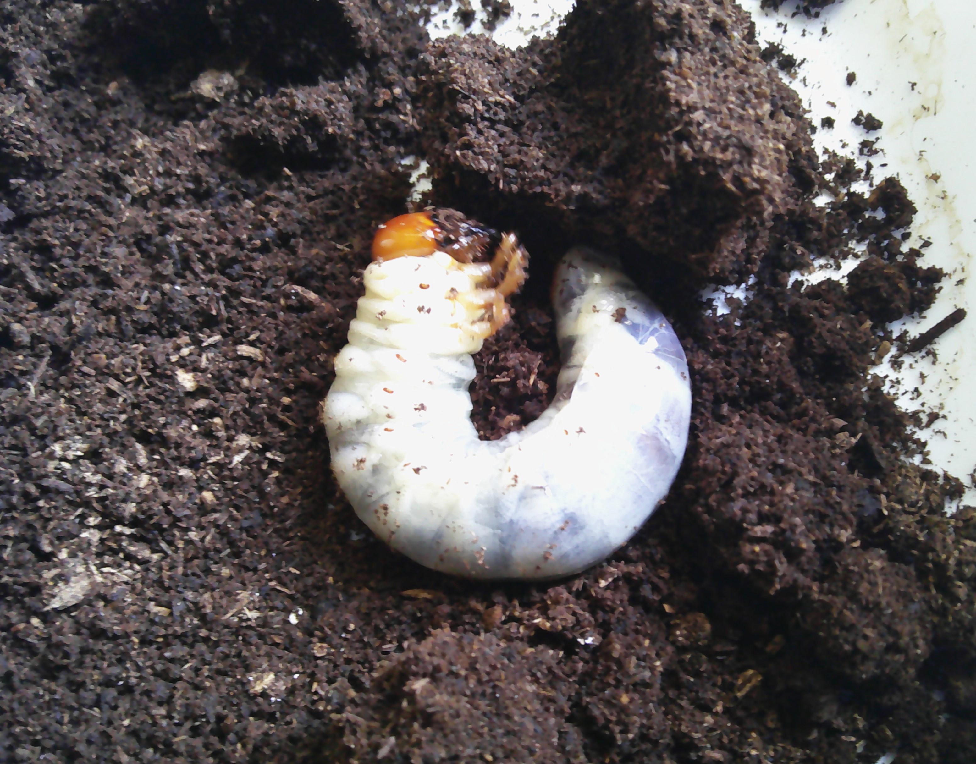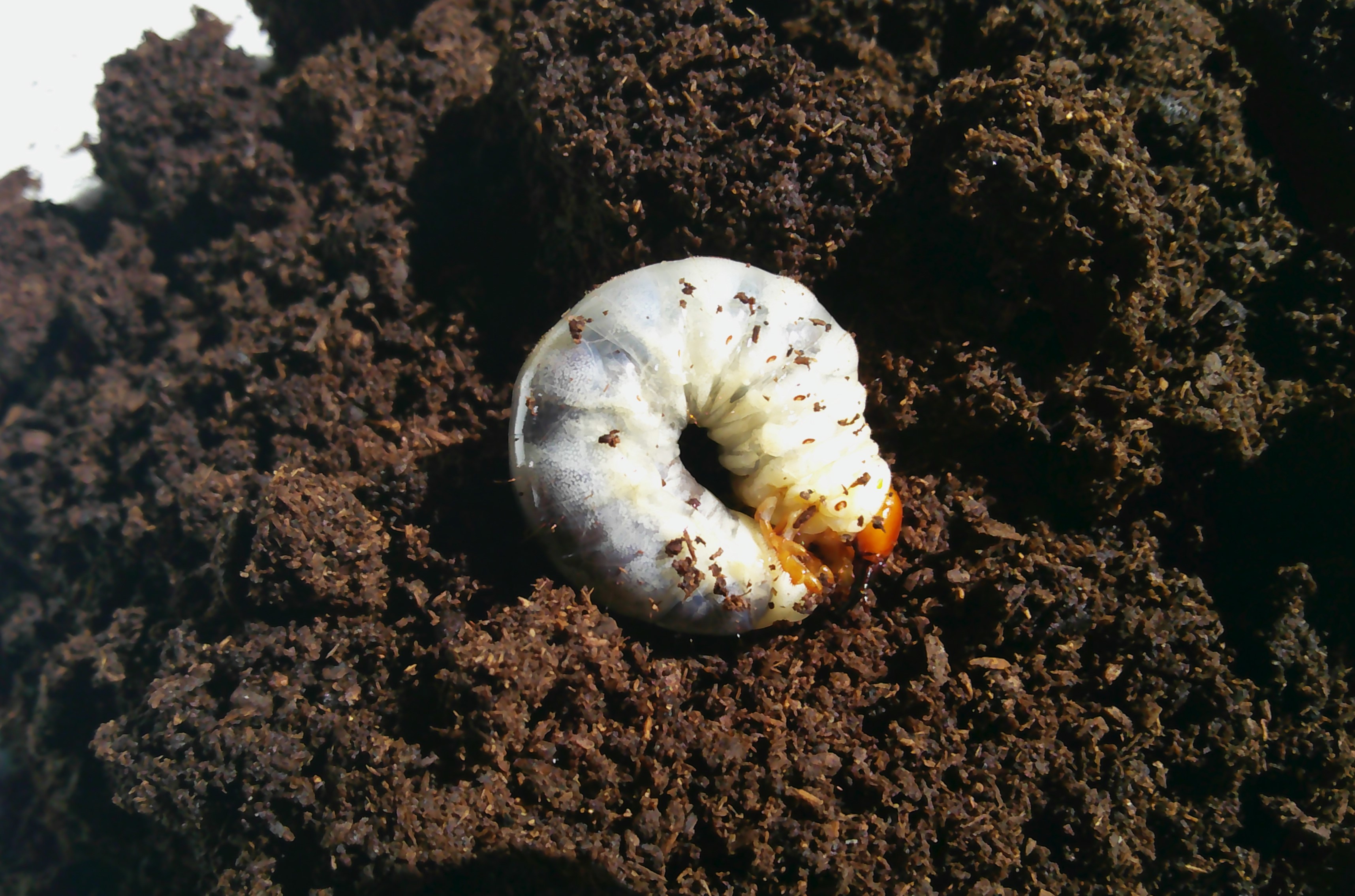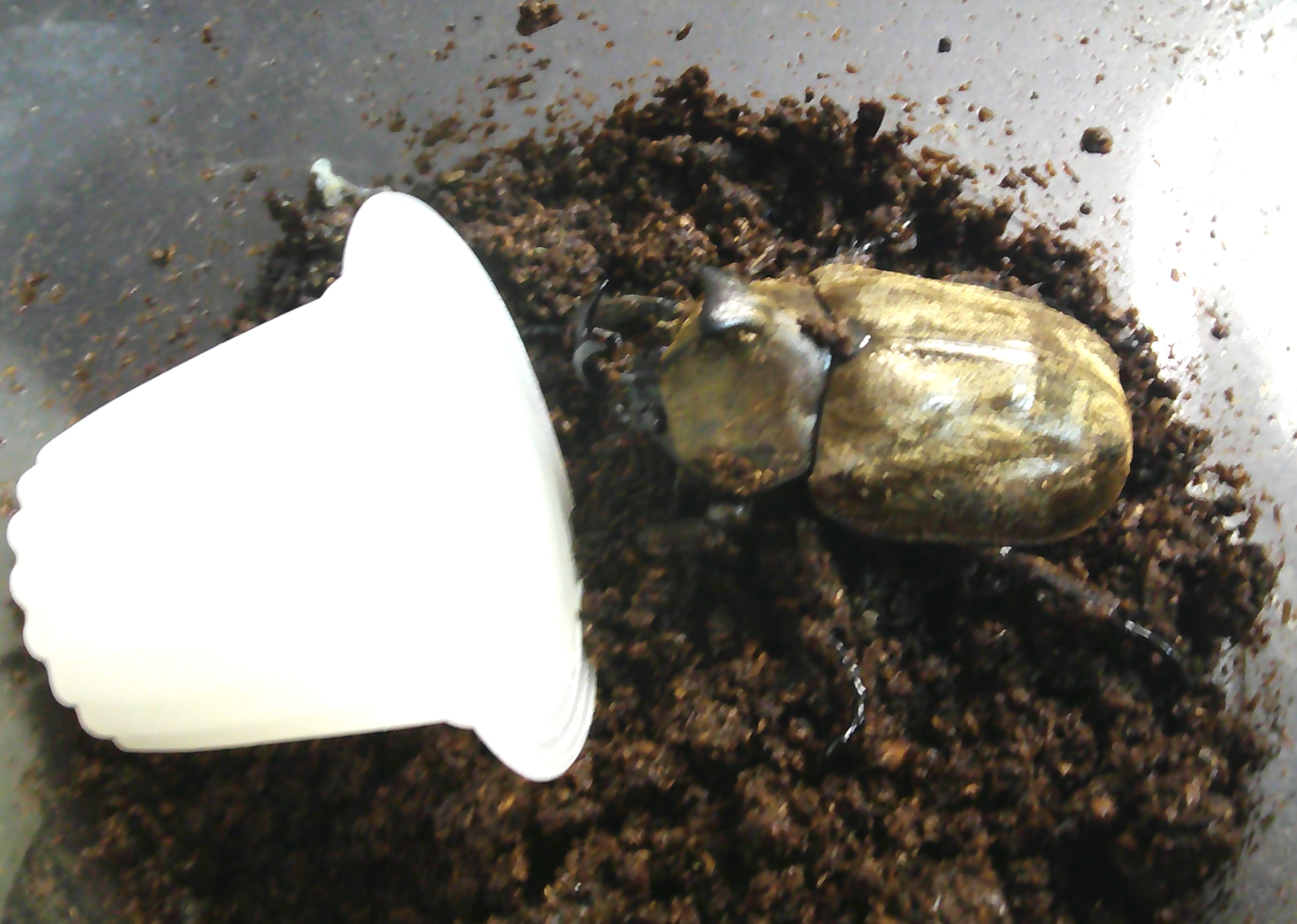 あと昨年採集してブリードしたハチジョウコクワが、蛹室を作っていました。。